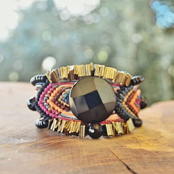 Kadın bilekliklerin bazı parçaları şık metal düğmeler ile tamamlanmıştır. Metale alerjiniz varsa belirtmeniz durumunda, metal yerine ip ile ayarlı bir son hazırlanabilir.