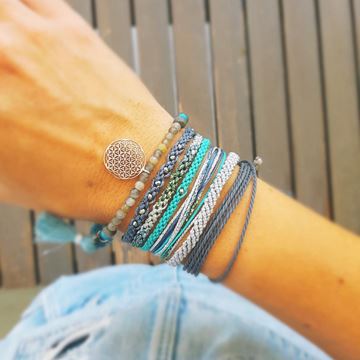 Labradorit, hematit doğal taşlar ve gümüş yaşam çiçeği sembolü ile 5 parçadan oluşan mis kombin ...