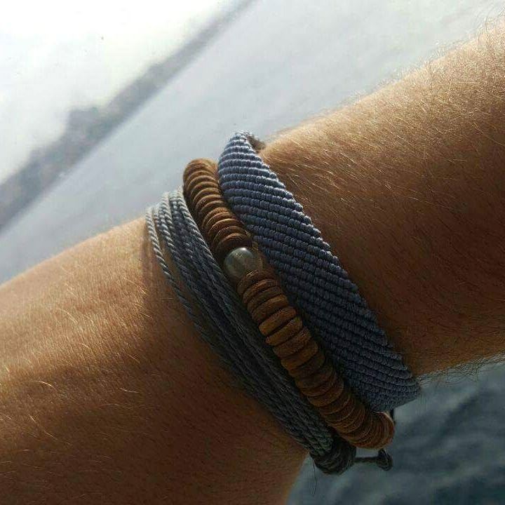 Coconut boncuklar ve labradorit taş ile 3 parçadan oluşan erkek bileklik seti.