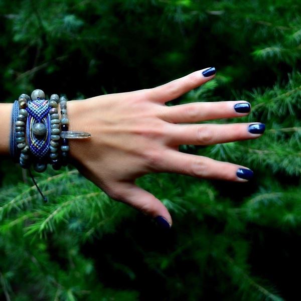 Kadın bilekliklerin bazı parçaları şık metal düğmeler ile tamamlanmıştır. Metale alerjiniz varsa belirtmeniz durumunda, metal yerine ip ile ayarlı bir son hazırlanabilir.