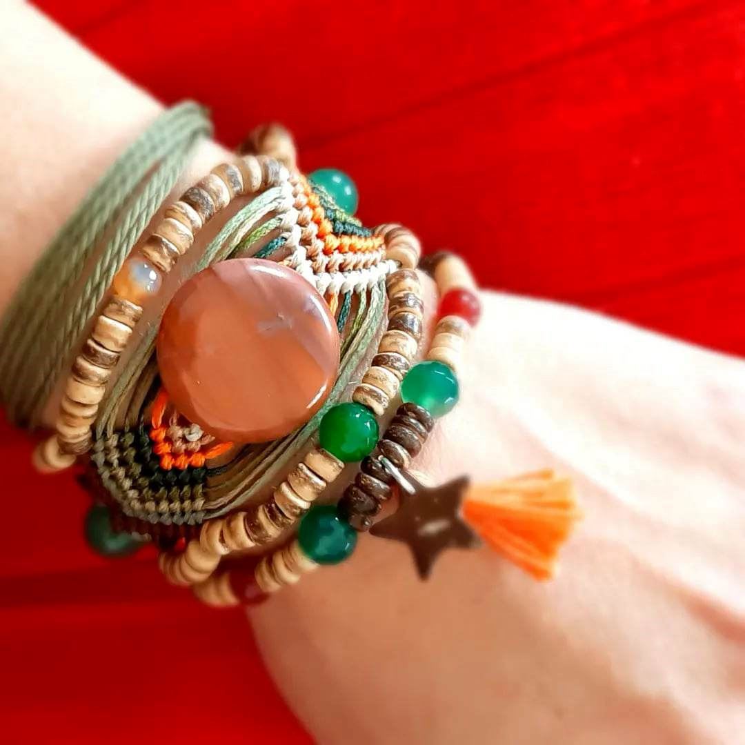 Mercan, turkuaz doğal taşlar, coconut boncuklar ve "Mucize" niyeti yazılı gümüş damla ile 4 parçadan oluşan mis kombin.